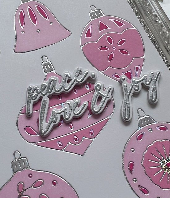 I do think this card is just perfect, Tracey! The festive ornaments, varied shades of pink and silver foiling are just beautiful!
